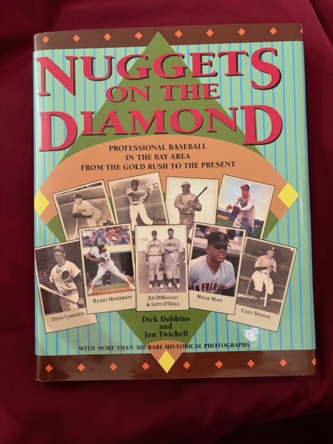 Dobbins, Dick. Nuggets on the Diamond. Inscribed by the author. Professional Baseball in the Bay Area from the Gold Rush to the Present. Photo available. San Francisco. Woodford Press. 1994. 304 pps. 4to. Hardcover. Stated first edition. Illustrated in black, white and color. Folding plates. Important reference work. Very scarce in this condition. Fine copy in fine dust jacket (in mylar).