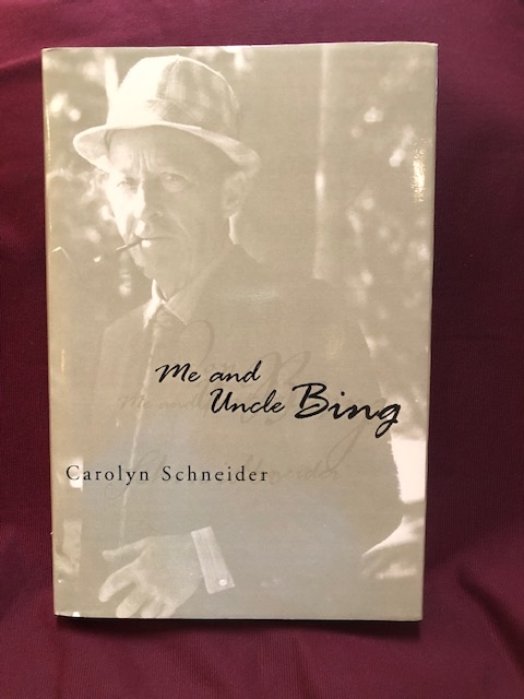 Schneider, Carolyn. Me and Uncle Bing (Crosby). Inscribed by the author. With DVD. Photo available. np. Xlibris. Self published. 2005. Octavo. Gilt decorated hard cover. First edition. Illustrated. Important reference work. Very scarce in this condition. Inscribed by the author "To Gene Dornbush - A Bing fan for over 50 years. Bless you! Best Wishes and thanks, Carolyn Schneider". Fine copy in fine dust jacket (in mylar). Unopened DVD. As new.