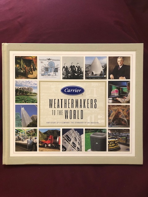 Schultz, Eric. Carrier. Weathermakers to the World. The Story of a Company. The Standard of an Industry. Photo available. np. Carrier Corporation. 2012. 144 pps. Folio. Decorated hard cover. First edition. Illustrated in black, white and color. Important reference work. Very scarce in this condition. Fine copy. As new.