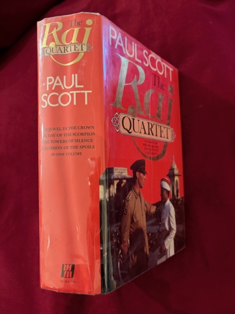 Scott, Paul. The Raj Quartet. Jewel in the Crown, Day of the Scorpion, Towers of Silence, Division of the Spoils. In One Volume. Photo available. New York. William Morrow. 1976. Folio. Gilt decorated hard cover. First edition thus. Very scarce in this condition. Fine copy in fine dust jacket (in mylar).