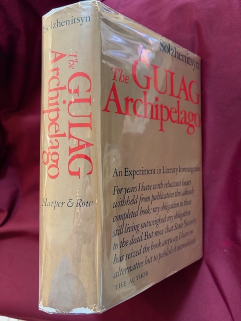 Solzhenitsyn, Aleksandr I. The Gulag Archipelago. 1-11. An Experiment in Literary Investigation. 1918-1956. Photo available. New York. Harper & Row. Publishers. 1974. 660 pps. Folio. Gilt decorated hard cover. Reprint. Book Club. Important reference work. Very scarce in this condition. Fine copy in fine (very light edge rubbing) dust jacket (in mylar).
