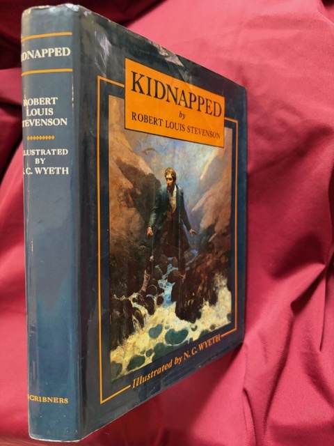 Stevenson, R.L. & N.C. Wyeth. Kidnapped. 1944. Being Memoirs of the Adventures of David Balfour in the Year 1751. http://www.bookmine.com/images/239032.jpg New York. Charles Scribners. 1982. 289 pps. 4to. Decorated hard cover. First edition thus. Illustrated in black, white and color by N.C. Wyeth. 15 color plates. Very scarce in this condition. Fine copy (bookplate) in fine dust jacket (in mylar).