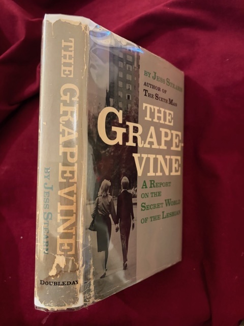 Stearn, Jess. The Grapevine. A Report on the Secret World of the Lesbians. Photo available. Garden City. Doubleday. 1964. 372 pps. Octavo. Decorated hard cover. Stated first edition. Important reference work. Very scarce in this condition. Fine copy (LGBT stamp on end paper) in good, price clipped, edge chipped dust jacket (in mylar).