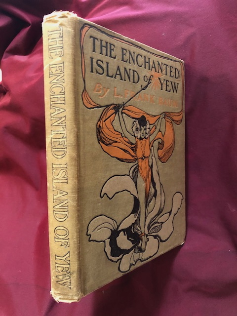 Baum, L. Frank. The Enchanted Island of Yew. Photo available. Indianapolis. Bobbs-Merrill Company. 1903. 242 pages. 4to. Greenish gray hardcover over boards, pictorial front cover stamped in black and red. Spine lettering in burnt orange. First edition. First issue, printer's name on copyright page. Illustrated in black, white and color by Fanny Y. Cory. Eight plates. Color frontispiece, color plates. Black and white line drawings as chapter heads and tailpieces. Near fine copy (very light shelf wear, slight fading to boards, lightly shaken signatures).