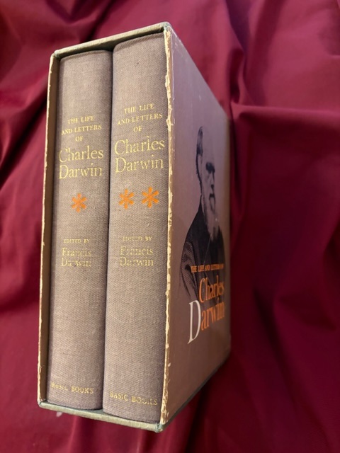 Darwin, Charles. The Life and Letters of Charles Darwin. 2 vols. in slip case. Including an Autobiographical Chapter. Photo available. New York. Basic Books. 1959. 4tos. Gilt decorated hard cover. First editions. Two volumes. Important reference work. Very scarce in this condition. Fine copies (spine lightly faded) in near fine (edges lightly worn) slip case.