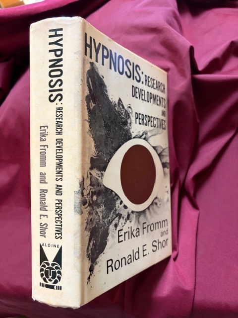 Fromm, Erika. Hypnosis: Research Developments and Perspectives. http://www.bookmine.com/images/239031.jpg Chicago. Aldine Publishing. 1972. 656 pps. Folio. Gilt decorated hard cover. Stated first edition. Illustrated. Important reference work. Very scarce in this condition. Fine copy in fine (very light edge wear) dust jacket (in mylar).