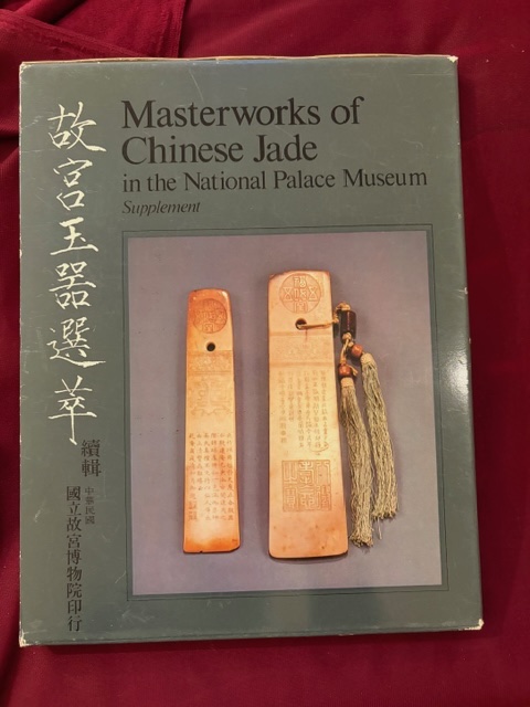 Fu-tsung, Chiang. Masterworks of Chinese Jade in the National Palace Museum. Supplement. Photo available. Taipei. National Palace Museum. 86 pps. Folio. Hardcover. First edition. Illustrated in black, white and color. Important reference work. Very scarce in this condition. Fine copy (name on end paper) in glassine wrapper in lightly edge worn slip case.