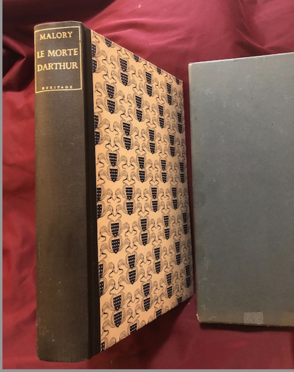 Malory, Sir Thomas. Le Morte D'Arthur. In slip case. Photo available. New York. Heritage Press. 1955. 757 pps. Folio. Gilt decorated hard cover. First edition thus. Illustrated by Robert Gibbings. Important reference work. Very scarce in this condition. Fine copy in lightly worn (tape on edges) slip case.