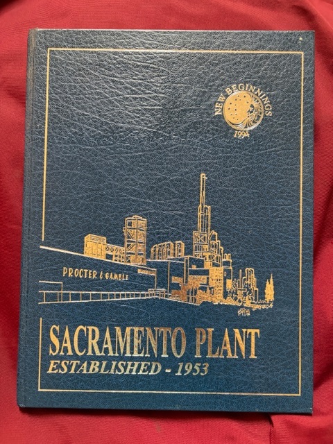 (Procter & Gamble). Sacramento Plant. New Beginnings. 1994. Established 1953. P&G. http://www.bookmine.com/images/239029.jpg Sacramento. Self published. c. 1994. 64 pps. Folio. Gilt decorated hard cover. First edition. Illustrated in black, white and color. Important reference work. Very scarce in this condition. Fine copy. As new.