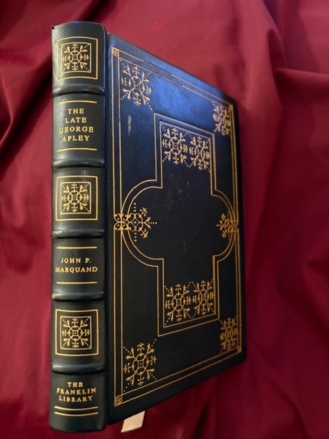 Marquand, John Phillips. The Late George Apley. Deluxe binding. Photo available. Franklin Center. Franklin Library. 1977. 306 pps. Octavo. Black leather. Gilt decorated hard cover. All edges gilt. Satin end papers. First edition thus. Illustrated by Jeffrey W. Cornell. Fine copy.