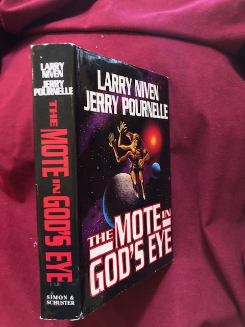 Niven, Larry. The Mote in God's Eye. Photo available. New York. Simon and Schuster. 1974. 475 pps. Octavo. Gilt decorated hard cover. First edition thus. Very scarce in this condition. Fine copy in fine (very light edge wear) dust jacket (in mylar).