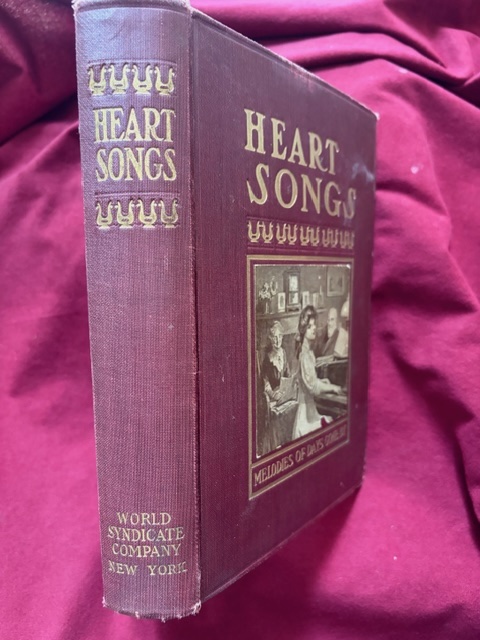 (anon). Heart Songs. http://www.bookmine.com/images/238745.jpg Boston. Chapple Pub. Co. 1909. 518 pps. Octavo. Gilt decorated hardcover. Pictorial pastedown. First edition. Illustrated. Very scarce in this condition. Fine copy.