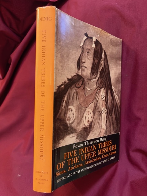 Denig, Edwin. Five Indian Tribes of the Upper Missouri. Sioux, Arickaras, Assiniboines, Crees and Crows. http://www.bookmine.com/images/239060.jpg Norman. University of Oklahoma Press. 1961. 218 pps. Octavo. Hardcover. Stated first edition. Illustrated. Important reference work. Very scarce in this condition. Fine copy in fine dust jacket (in mylar).