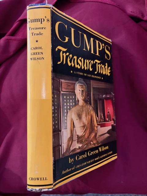 Wilson, Carol. Gump's Treasure Trade. A Story of San Francisco. Photo available. New York. Thomas Y. Crowell. 1949. 288 pps. 4to. Gilt decorated hard cover. First edition. Illustrated in black, white and color. Important reference work. Newspaper photo laid in of a tapestry gift to Gump. Fine copy in fine dust jacket (in mylar).