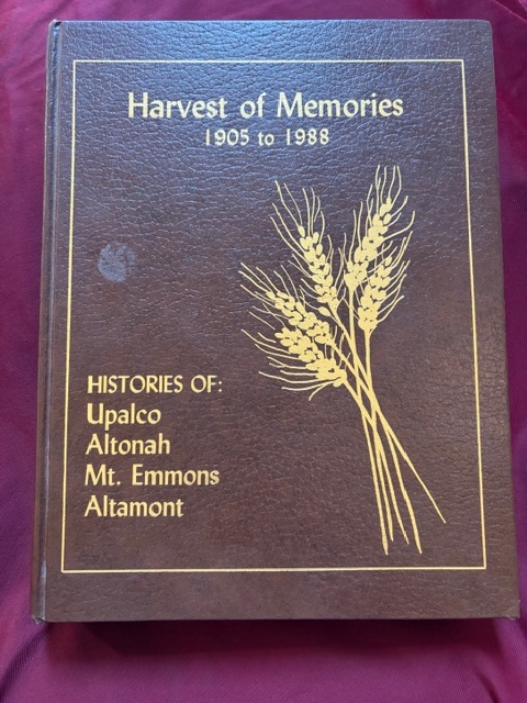 (misc.). Harvest of Memories. 1905 to 1988. Compiled 1984 thru 1988. Histories of: Upalco, Altonah, Mt. Emmons, Altamont (Utah). http://www.bookmine.com/images/238883.jpg np. Self published. nd. 819 pps. Folio. Gilt decorated hard cover. Brown leather. First edition. Illustrated in black, white and color. Important reference work. Very scarce in this condition. Fine copy. As new.
