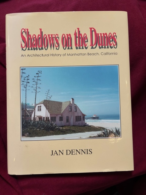 Dennis, Jan. Shadows on the Dunes. Inscribed by the author. An Architectural History of Manhattan Beach, California. http://www.bookmine.com/images/238996.jpg Manhattan Beach. Janstan Studio. 2001. 207 pps. Folio. Gilt decorated hard cover. Stated first edition. Illustrated. Important reference work. Very scarce in this condition. Inscribed by the author "To Cheryl - May you enjoy a look at Manhattan Beach Jan 7-11-2001". Manhattan Beach postcard laid in Fine (large, owner inscription) copy in fine dust jacket (in mylar).