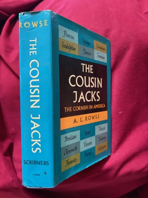 Rowse, A.L. The Cousin Jacks. The Cornish in America. http://www.bookmine.com/images/238992.jpg New York. Charles Scribners & Sons. 1969. 451 pps. Octavo. Gilt decorated hard cover. First edition "A". Important reference work. Very scarce in this condition. Fine copy in fine dust jacket (in mylar).