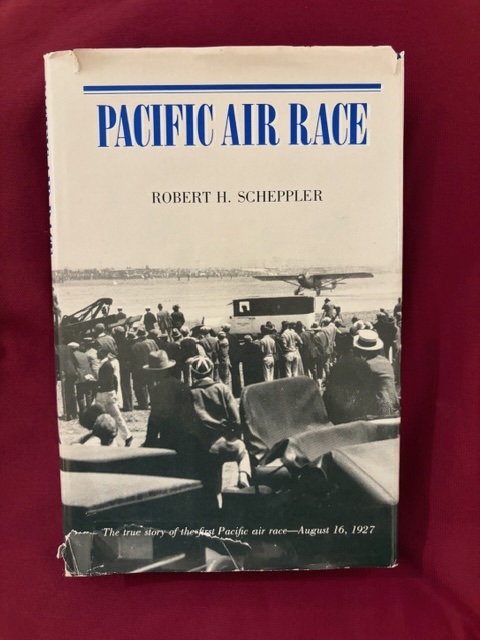 Scheppler, Robert. Pacific Air Race. Photo available. Washington. Smithsonian Institute Press. 1988. Octavo. Gilt decorated hard cover. First edition. Illustrated. Important reference work. Very scarce in this condition. Related material laid in. Fine copy in near fine (light edge wear, bottom edge) dust jacket (in mylar).