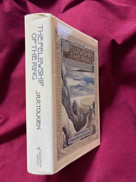 Tolkien, J.R.R. The Fellowship of The Ring. http://www.bookmine.com/images/239016.jpg Boston. Houghton Mifflin. 1986. 423 pps. 4to. Gilt decorated hard cover. Early reprint. Very scarce in this condition. Large, folding map in rear. Fine copy (blank bookplate) in fine dust jacket (in mylar).