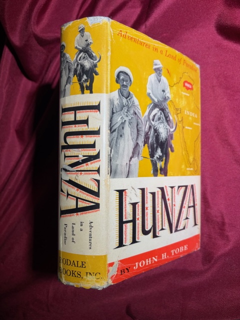 Tobe, John H. Hunza. Adventures in a Land of Paradise. Photo available. Emmaus. Rodale. 1960. 646 pps. Octavo. Decorated hard cover. First edition. Illustrated. Important reference work. Very scarce in this condition. Fine copy in edge chipped dust jacket (in mylar).