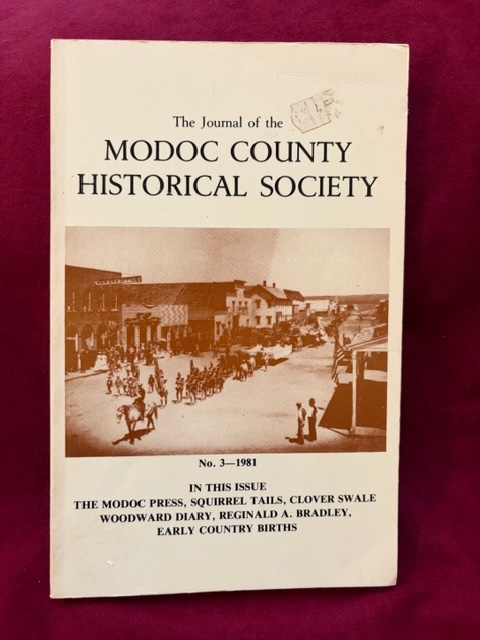 White, Loring (ed). Journal of The Modoc County Historic Society. Number Three. http://www.bookmine.com/images/238955.jpg np. Modoc County Historic Society 1981. 92 pps. Octavo. Soft cover. First edition. Illustrated. Important reference work. Very scarce in this condition. Fine copy (very light shelf wear, small name on end paper).