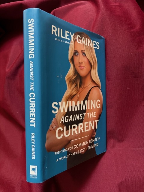 Gaines, Riley. Swimming Against the Current. First edition. Fighting for Common Sense in a World That's Lost Its Mind. http://www.bookmine.com/images/238911.jpg Nashville. Center Street. 2024. 259 pps. Octavo. Gilt decorated hard cover. Stated first edition. Important reference work. Very scarce in this condition. Fine copy in fine dust jacket (in mylar). As new.