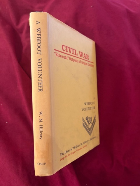Hilleary, William. Civil War. "Blue-coat" Outposts of Oregon Country. A Webfoot Volunteer. The Diary of William M. Hilleary. 1864-1866. Photo available. Corvallis. Oregon State University Press. 1965. 240 pps. Octavo. Gilt decorated hard cover. First edition. Illustrated. Important reference work. Very scarce in this condition. Fine copy in fine (very light edge wear) dust jacket (in mylar).