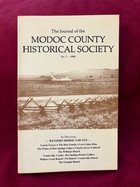 Pat Berry (ed). Journal of The Modoc County Historic Society. Number Seven. http://www.bookmine.com/images/238956.jpg np. Modoc County Historic Society 1985. 153 pps. Octavo. Soft cover. First edition. Illustrated. Important reference work. Very scarce in this condition. Fine copy (very light shelf wear, small name on end paper).