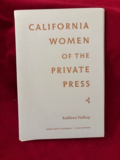 Walkup, Kathleen. California Women of the Private Press. Keepsake 2022. Photo available. San Francisco. The Book Club of California. 2022. 4to. Soft cover. First edition. 11 pamphlets. Illustrated. Important reference work. Very scarce in this condition. Fine copy. As new.