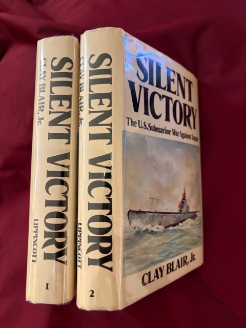 Blair, Clay. Silent Victory. 2 volumes. The U.S. Submarine War Against Japan. Photo available. Philadelphia. J.B. Lippincott Co. 1975. 1055 pps. Octavos. Gilt decorated hard cover. Reprints. Book Club. Two volume set. Important reference work. Very scarce in this condition. Fine copies in fine dust jackets (in mylar).