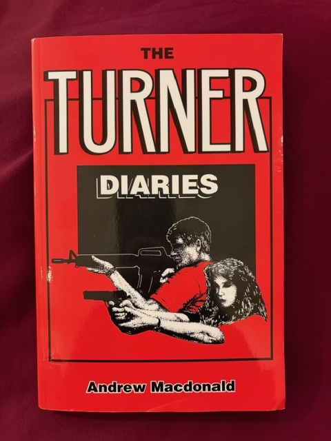 Macdonald, Andrew. The Turner Diaries. A Novel. http://www.bookmine.com/images/238390.jpg Hillsboro. National Vanguard Books. 2002. 221 pps. + ads. Octavo. Soft cover. Reprint. Very scarce in this condition. Fine copy.