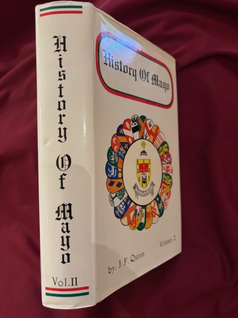 Quinn, J.F. History of Mayo. Volume II. http://www.bookmine.com/images/238493.jpg Ballina. Brendan Quinn. 1993. 435 pps. Folio. Gilt decorated hard cover. First edition. Illustrated. Important reference work. Very scarce in this condition. Fine copy in fine dust jacket (in mylar).