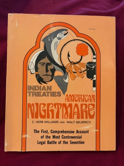 Williams, Herb & Walt Neubrech. Indian Treaties. American Nightmare. Inscribed by the authors. http://www.bookmine.com/images/238707.jpg Seattle. Outdoor Empire Publishing. 1976. 100 pps. 4to. Soft cover. First edition. Illustrated. Important reference work. Very scarce in this condition. Inscribed by the authors "To Tom Kimball: Thanks Tom for your help & support Walter Neubrech C. Herb Williams". Fine copy (very light shelf wear).