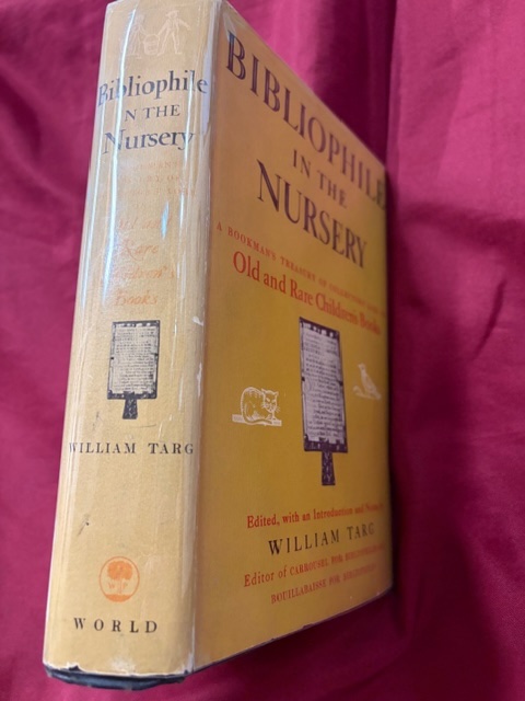 | Targ, William. Bibliophile in the Nursery. A Bookman's Treasury of Collectors' Lore on Old and Rare Children's Books. Photo available. Cleveland. World Pub. 1957. 506 pps. Folio. Hardcover. First edition. Illustrated. Folding plate. Important reference work. Very scarce in this condition. Near fine copy (light shelf wear, book plate) in fine (price clipped) dust jacket (in mylar). Book ID: 227053 |